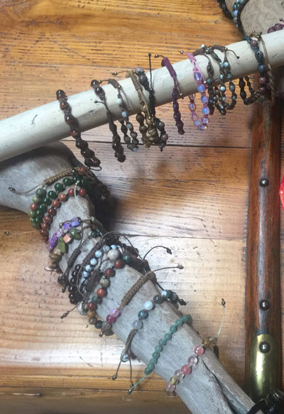 All pieces are made with hemp twine & from beautiful semi precious minerals; Rei - has a hawk eye - & not only does she know how to spot a the real polished mineral beads vs replicated plastic versions; but she can also name the exact mineral just by looking at it within seconds. Extremely smart & talented - so much of her own meraki is focused into every weave. We now have the opportunity to wear her intentional powerful energy & benefit from not only the energy that is put into is creation - but every stone's unique frequency. This helps with certain parts of our body, mind, &/or spirit or (also know as a chakra point) - which may be feeling imbalanced.